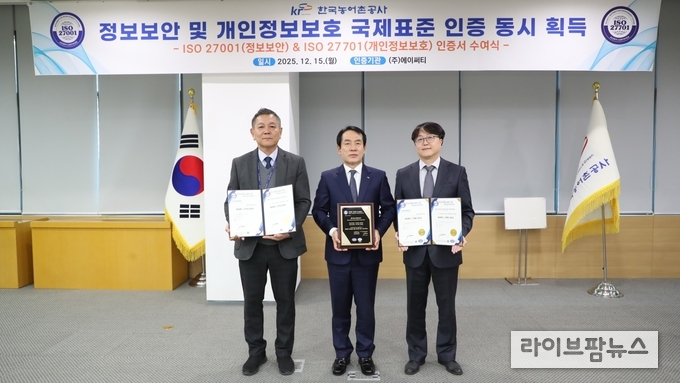 한국농어촌공사(사장 김인중)는 15일 ‘정보보안 경영시스템(ISO/IEC27001)’과 ‘개인정보보호 경영시스템(ISO/IEC27701)’ 인증을 동시에 획득했다고 밝혔다.