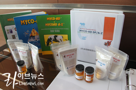 MYCO-AD는 단순 독소 흡착율 뿐만 아니라, 곰팡이 독소강제 감염 동물 실험을 통해 곰팡이 독소 억제 효과를 검증하고 있다. 특히, 정제, 활성화 공정을 통해 흡착율을 높인 프리미엄 제품인 MYCO-AD A-Z는 양돈에서 문제가 되는 제랄레논, 푸모니신, 보미톡신을 억제하는 탁월한 효과 자료들을 제시해 많은 관심을 받았다.