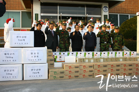 양돈자조금관리위원회(위원장 이병모)는 지난 16일 강화에 있는 해병 2사단을 방문, 구제역 방역 활동 지원에 감사하는 뜻으로 국산 돼지고기 700kg을 전달했다. 이 날 한우자조금관리위원회와 낙농자조금관리위원회에서도 한우와 유제품 등을 전달했다.