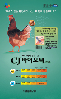 CJ바이오텍은 특정 병원성 세균을 파괴하는 미생물을 활용한 신개념 사료용 첨가제 ‘바이오텍터’가 첨가된 제품이다. "바이오텍터"는 특정 세균에만 작용하는 기생형 미생물인 ‘박테리오파아지’를 활용하기 때문에 유익균은 그대로 놔두고 병원성 세균만 골라 파괴하는 특징을 갖고 있다. 미생물로 세균을 잡는 원리이기에 내성이나 생체 잔류 등의 염려가 없다. CJ제일제당 김상규 양계팀장은 “CJ바이오텍 사료는 정부, 농가, 소비자가 바라는 OnlyOne적인 친환경제품으로 산란계 산업 발전에 획기적인 전기를 마련한 제품”이며 “세균성 질병 중 특히, 티푸스의 원인균인 SG, SP를 예방할수 있어 하절기 농가들에게 티푸스 없는 편한 세상을 만들어 줄 것”이라고 전했다 한편, CJ제일제당 사료양계팀은 지난 4월부터 양계캠페인을 진행하고 있다. 양계업계에서는 드물게 서비스 프로그램(산란일지와 중추 체중측정)을 실행하여 난가하락으로 고통받는 농가들의 수익제고에 기여하고 있다. 산란율이 중추에서 크게 결정되는 만큼 중추 체중측정 서비스는 계균의 균일도를 높여 생산성 향상에 큰 효과가 있다. 이밖에도 미네랄과 비타민제제를 보강 하절기 배합비를 운용하여 농가에 큰 보탬을 주고 있다. 여기에다 지역별 세미나를 통한 양계시황 전망공유는 물론 컨설팅수행으로 농가에게 시원한 바람을 선사하고 있다. |