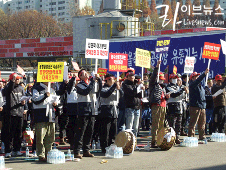 축공 중도매인들은 23일 축공 유통기능 사수 및 이전 연기 총력투쟁 궐기대회를 열고 음성공판장이 가동될 때까지 중도매인들의 음성 이전 연기를 요구했다. 서울시는 가락시장의 시설현대화사업 진행과 민원으로 오는 12월까지 중도매인들에게 음성으로 이전할 것을 요구하고 있으며, 현재 음성 이전을 거부하고 있는 중도매인들에게 1차 행정처분을 내렸다. 현재 음성공판장은 시설미비로 시험도축(최소 2~3개월)과 도축시설 완비 및 도축관련 인허가 획득(HACCP 인증 등)이 이루어지지 않은 상태이다. 음성공판장의 정상적인 가동까지는 최소한 3개월 이상 걸릴 것으로 예상되고 있는 가운데 중도매인들은 서울시가 축공 폐쇄를 강행할 경우, 중도매인들은 500억원 이상의 피해를 입을 것이라고 주장했다. 중도매인들은 이에 따라 음성공판장 유통기능과 법적보완이 완료되어 정상가동이 될 때까지 축공 폐쇄를 연기해 줄 것을 서울시와 농협중앙회에 요구했다. 중도매인들은 이러한 요구 사항에 대해 서울시와 농협중앙회의 명확한 답변이 없을 경우 경매 지연사태는 또다시 벌어지게 될 것이라고 밝혔다. 한편 이날 지연된 경매는 오후 3시에 재개됐다. |
