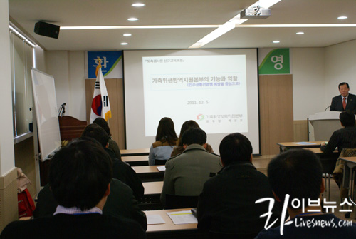 배상호 본부장은 지난 5일 양성교육 입교식에서 “우리본부는 악성가축전염병의 질병청정화와 위생적이고 안전한 축산식품을 국민에게 생산·공급하기 위한 봉사기관으로서의 책임과 역할에 충실해 줄 것”을 당부하고, 아울러 “검사업무 수행시 안전의식 제고 및 안전장구 착용으로 재해가 발생하지 않도록 세심한 관심을 가져 줄 것”을 당부했다. 검사원 양성·보수교육은 축산물위생관리법 해설, 도축검사 폐기기준, 가축 주요 질병의 육안병변 진단방법 등 전문교육과 함께 검사업무 수행 시 발생할 수 있는 산업안전사고의 예방을 위한 교육도 함께 실시했다. |