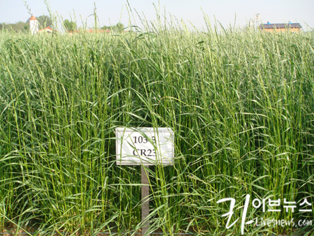 남부지역은 벼 이앙시기(5월 하순)와 따뜻한 기후로 답리작 사료작물 재배에 유리하나 중부지역에서는 5월 중순에 벼를 이앙하기 때문에 5월 초에 월동 사료작물을 수확해야 한다. 따라서 농촌진흥청 국립축산과학원에서는 중부지역에서 4월 하순과 5월 상순에 수확할 수 있는 이탈리안 라이그라스 극조생 그린팜을 개발했으며, 중부지역 답리작 재배에 성공했다. 지금까지 중부지역에서 논을 이용한 답리작 재배는 기존 이탈리안 라이그라스나 청보리 품종으로는 수확시기가 늦어 어려움이 있었다. 이탈리안 라이그라스 극조생 ‘그린팜’은 기존 조생종보다도 출수가 10여 일 빠르고 호밀과 대등한 숙기이기 때문에 앞으로 중부지방 답리작 재배확대에 크게 기여할 것으로 본다. 이탈리안 라이그라스 사일리지를 가축에 급여하면 관행 사육에 비교해서 거세한우의 경우 일당증체량이 22 % 증가하고, 젖소의 경우 산유량이 13 % 증가하는 것으로 나타났다. 우리나라의 전체 이탈리안 라이그라스 재배면적은 2007년에 21,700ha에 불과했으나 2011년에는 6만ha로 대폭 증가했다. 이런 추세로 보면 재배면적이 2014년에는 7만ha 이상으로 늘어날 전망이다. 농촌진흥청 초지사료과 최기준 과장은 “이번 이탈리안 라이그라스 새품종 ‘그린팜’ 수확연시회를 통해 중부지역이 쌀 생산 주산지인 동시에 양질조사료를 생산하는데 새로운 품종으로 재배면적 확대와 생산성 향상에 크게 기여하길 바란다.”라고 말했다. |