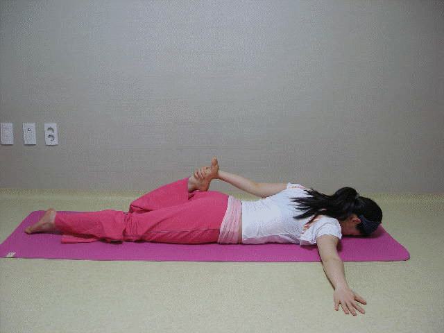 ○ 굽은 어깨가 펴지며 어깨, 등, 뒤 군살을 없애줌. ○어깨, 등 뭉친 근육을 풀어줌. ○척추의 유연성과 신축성, 탄력성을 가져온다. ○신장의 기능을 활성화 한다. ★ 운동순서 <1> 왼팔을 어깨 옆으로 뻗어 수평 손바닥 짚고 <2> 오른다리 무릎접어 오른손 뒤로가 오른발 발등을 잡는다. <3> 숨 들이쉬며 상체 오른다리 들어 올려 <4> 내쉬며 오른 다리를 왼손 가까이 넘겨 고개들어 오른쪽 어깨너머를 바라보며 호흡을 한다.<10~15초 유지> <5> 왼다리는 곧게 펴준다.<반대쪽도 같은 방법으로 실시> |