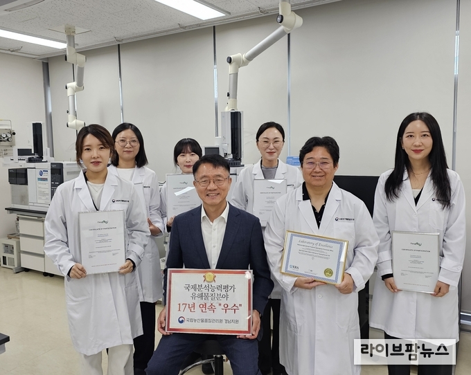국립농산물품질관리원 경남지원(지원장 백운활, 이하 경남농관원)은 영국 식품환경연구청(FERA)과 미국 환경자원협회(ERA)가 주관하는 2025년도 국제숙련도 평가 프로그램 4개 분야에 참가하여 해당 기관으로부터 잔류농약·미생물·중금속·곰팡이독소 분석 우수기관으로 인정받았다고 28일 밝혔다.