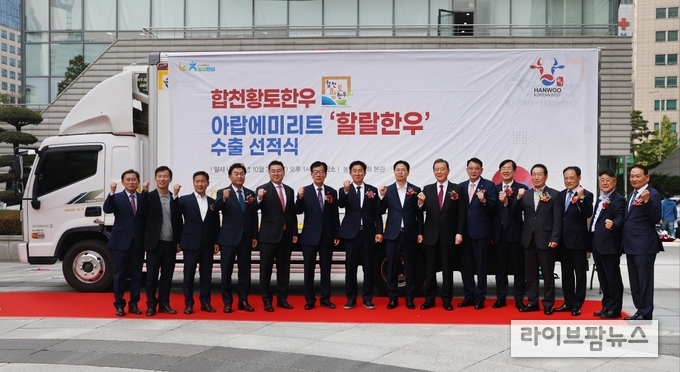 농림축산식품부(장관 송미령)는 30일 농협중앙회에서 처음으로 아랍에미리트(이하 UAE)에 정식 수출되는 한우고기의 선적기념식을 개최했다고 밝혔다. 이날 선적기념식에는 강형석 농식품부 차관, 홍문표 한국농수산식품유통공사 사장, 안병우 농협 축산경제 대표이사, 전원석 횡성케이씨 대표 등이 참석했다.
