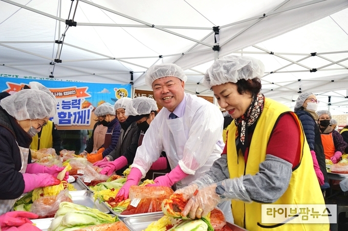 참석자들은 비가 오는 궂은 날씨 속에서도 도움이 필요한 이웃에게 전달할 김치 500kg(약 100포기)을 함께 담그며 지역사회 상생의 가치를 나누는 뜻깊은 시간을 가졌다. 김장 담그기 후에는 김장김치, 한돈 수육과 함께하는 잔치 나눔이 이어져 화기애애한 분위기 속에서 행사가 마무리됐다.