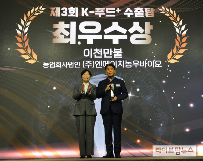 국내 대표 종자기업 NH농우바이오(대표이사 양현구)가 농림축산식품부가 주관하고 한국농수산식품유통공사(aT)가 추진한 ‘제3회 K-푸드 플러스 수출탑’ 시상식에서 수출탑 최우수상을 수상했다.