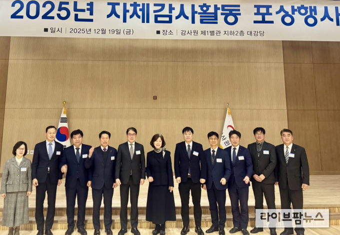 축산물품질평가원(원장 박병홍)은 19일 감사원이 주관한 ‘2025년 자체 감사 활동 포상 행사’에서 적극행정 모범사례와 사전컨설팅 우수사례로 총 2건의 표창을 수상했다.