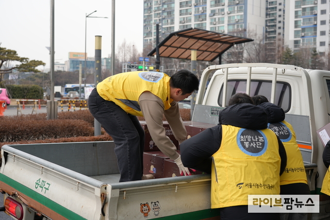 서울시농수산식품공사(사장 문영표, 이하 공사)가 고물가로 시름하는 지역 이웃들을 위해 가락시장 유통인들과 손을 잡았다. 공사는 가락시장 유통인 중심의 공익법인 (사)희망나눔마켓(이사장 이상용)과 함께 10일, 송파구 내 저소득층과 복지시설을 대상으로 ‘설 맞이 제수용품 300세트 및 과일(사과,배) 60상자’를 전달했다고 밝혔다.