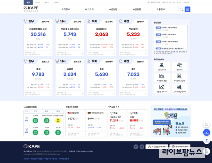 또한, 생산자·유통인·소비자·종합 등 이용자 유형별로 관심 정보를 반영한 메뉴를 구성했다. 누리집 화면의 가독성을 높이고 가격 상승·하락을 색상으로 구분해 표시하는 등 정보 시인성도 한층 강화했다. 소비자의 합리적인 축산물 구매를 지원하기 위해 유통업체 할인 행사 정보도 새롭게 추가했다.