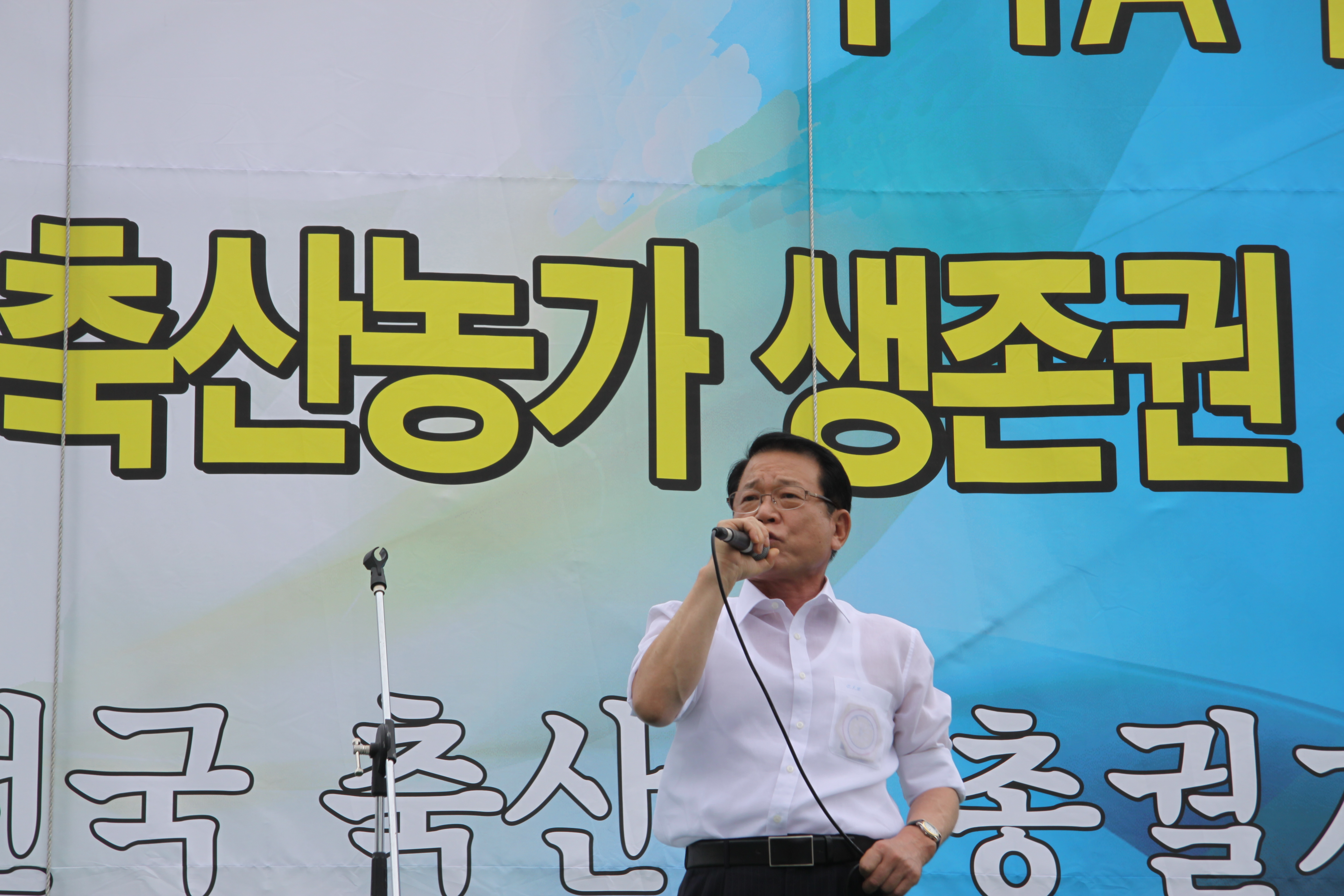 최인기 위원장은 지난 12일 서울 여의도 공원에서 개최된 ‘FTA 반대! 생존권 쟁취! 전국 축산인 총궐기대회’에서 ▲대책없는 FTA 반대 ▲한‧미 FTA 재협상 ▲안전성 확보되지 않은 수입 쇠고기 수입 반대 ▲축산기자재 부가가치세 영구 면세 등을 정부에게 요구했다. |