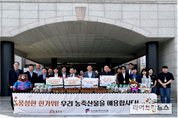한국식품안전관리인증원(원장 한상배, 해썹인증원)은 29일, 공주시청 본관 1층 앞마당에서 ‘우리 농축임산물 애용 캠페인’을 운영했다. 이번 캠페인은 추석 명절을 맞아 우리 농축임산물 소비 촉진을 통해 탄소 발자국을 줄이고, 지역사회와 상생하는 이에스지(ESG)의 일환으로 마련됐다. 해썹인증원은 안전하고 품질 좋은 우리 농축임산물 소비를 확대해 지역경제 활성화에 기여하고자 이번 캠페인을 추진했다. 특히, 기관장이 직접 참여해 이에스지(ESG) 경영 실천 의지를 강조하며 국민 인식 제고 활동을 이어갔다. 이번 행사는 ‘지역 특산물 애용이 곧 이에스지(ESG) 실천’이라는 메시지를 중심으로 ▲우리 농축임산물 구매 촉진 홍보 ▲알밤 등 공주시 지역 대표 특산물 소개 및 홍보 ▲지역 특산물 사회복지시설 기부 등으로 운영됐다. 한상배 원장은 “해썹인증원은 국민에게 안심 먹거리를 제공하고 식품안전을 지키는 동시에, 지역사회와 함께 성장하는 공공기관으로서 사회적 책임을 다하고 있다.”라며, “특히, 자매결연 예정인 지자체와의 협력과 관계기관과의 협업을 통해 이에스지(ESG)를 실천할 수 있어 더욱 뜻깊게 생각한다.”라고 밝혔다.