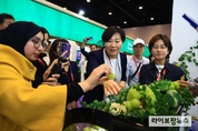 송미령 농림축산식품부 장관은 28일 아랍에미리트(UAE) 두바이에서 UAE 기후변화환경부 장관과 식량안보를 위한 양국 간협력 방안을 논의하고, UAE를 거점으로 중동과 아프리카까지 K-할랄식품 진출을 확대하기 위해 수출기업, 현지 인플루언서, 소비자들과 소통했다고 밝혔다. UAE 기후변화환경부 장…