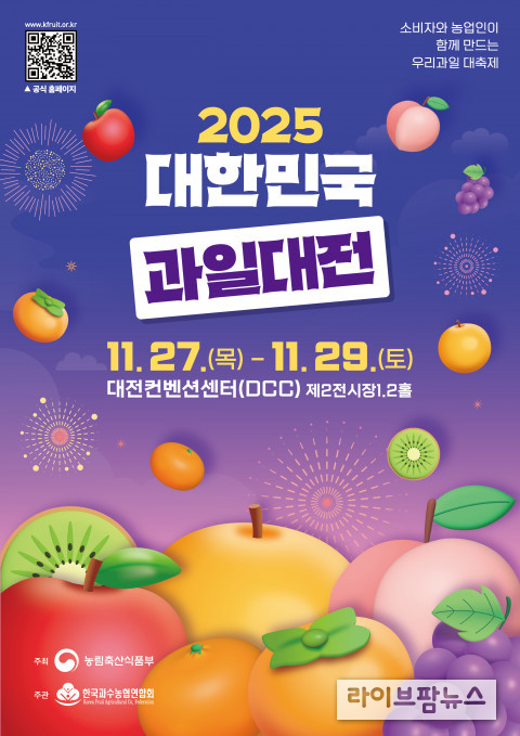 박철선 한국과수농협연합회장은 “2025 대한민국 과일산업대전은 생산자와 소비자가 함께 만드는 과일 축제이자 국산 과일 산업의 비전과 매력을 직접 확인할 수 있는 자리”라며 “온 가족이 즐기며 우리 과일의 가치에 공감하는 시간이 되길 기대한다”고 말했다.