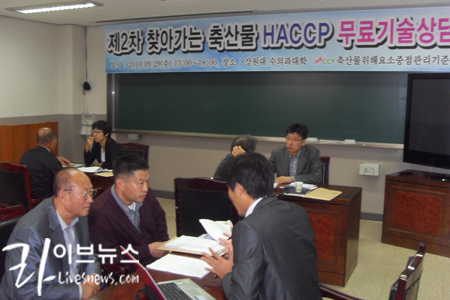 축산물위해요소중점관리기준원(원장 석희진)은 작년에 이어 금년도에 들어 두번째 찾아가는 HACCP 무료 기술상담을 9월 29일 강원대학교 수의과대학에서 실시했다.