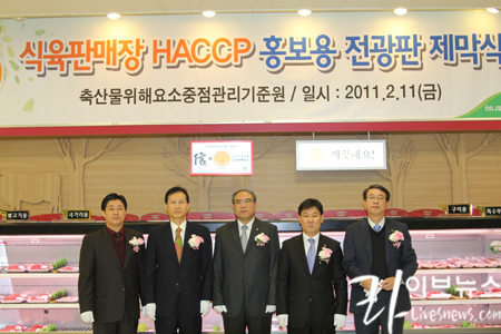 축산물위해요소중점관리기준원(원장 석희진)은 지난 2월 11일 식육판매업HACCP 활성화를 위해 수도권 식육판매업소 3곳을 선정, HACCP홍보용 전광판을 증정하고 제막행사를 가졌다.