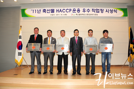 축산물HACCP 운용 우수작업장 선발은 축산물HACCP의 우수성을 홍보하고 나아가 축산물HACCP 작업장의 운용수준을 향상하고자 추진된 사업으로, 특히 올해는 축산관련 전문기관에 평가기준 개발과 외부검증을 의뢰하여 공정성 및 신뢰성을 높였다. 우수작업장 선발은 최근 2~3년간의 정기심사 결과를 바탕으로 학계․소비자단체․축산관련 연구원 등 축산분야의 전문가로 구성된 현장심사단과 외부 심의위원회의 엄정한 심사를 통해 선정됐으며 상반기에는 식육포장처리업, 식육가공업, 유가공업 및 알가공업 분야의 7개 업체를 선정했고 하반기에는 배합사료공장 및 가축사육단계 분야에 대한 선정이 있었다. 이번에 최종 선정된 5개 업체(농장)은 (주)우성사료 천안공장(배합사료), 영광호농장(한우), 영농조합법인 운도축산(돼지), 포프리팜(산란계), 농업회사법인(주)삼화원종 갈산농장(육계)이다. 석희진 원장은 이날 시상식 자리에서 축산물HACCP을 훌륭히 운용하는데 대한 감사와 함께 "이번에 선발된 작업장에 대한 소비자 인식도 제고 및 타 업체의 모범사례가 될 수 있도록 그 우수성을 국민들에게 적극 홍보하겠다"고 밝혔다. ‘10년부터 본 사업을 시행하고 있는 기준원은 축산물HACCP 운용 작업장 전반의 수준 향상과 소비자 인지도 제고를 위해 지속적으로 사업을 확대 시켜나갈 계획이다. |