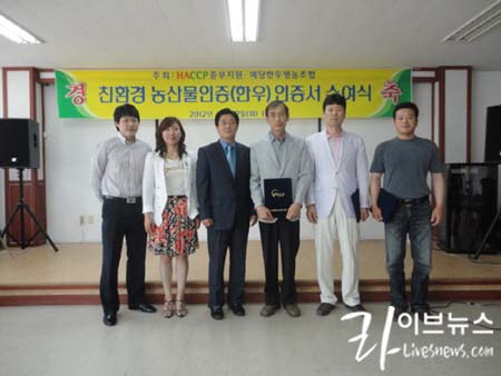 축산물위해요소중점관리기준원(원장 석희진)은 12일 충청도 지역의 예당한우영농조합(회장 이승열) 소속 21개 농장 등 총 23개 농장을 무항생제축산물 농가로 인증하고 인증서 전달식을 가졌다.