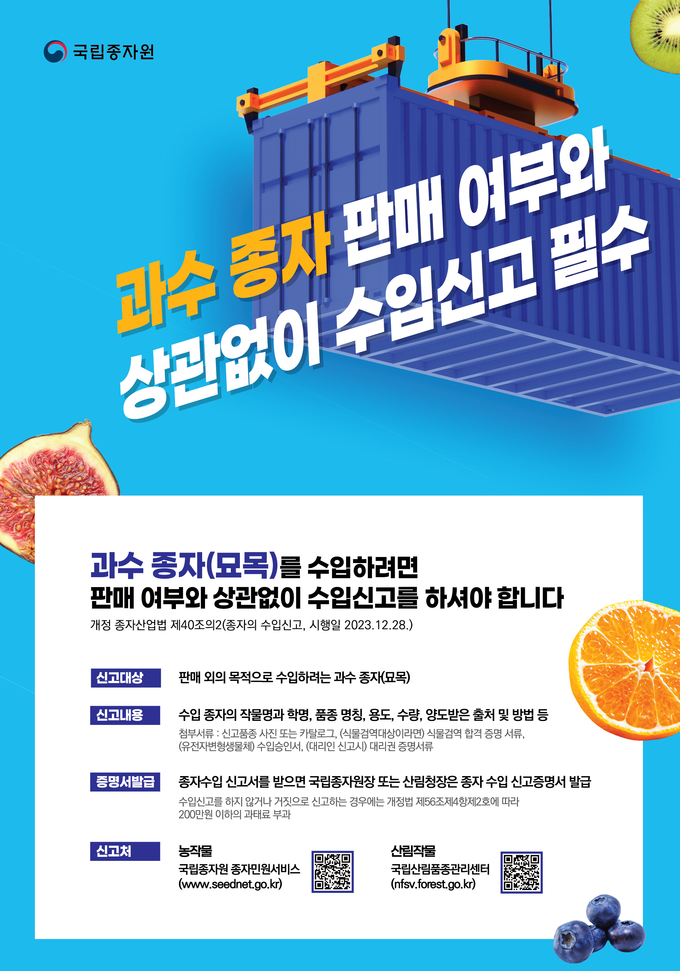 과수종자 판매 여부와 상관없이 수입신고 필수