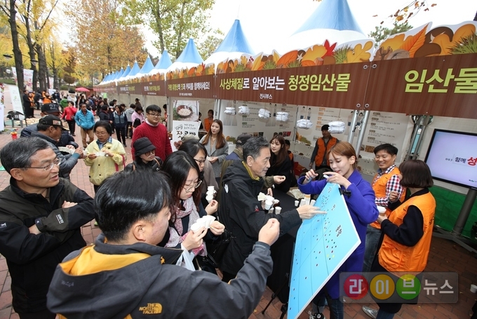 서울어린이대공원 후문 메인 행사장에는 약 50개 부스에서 100여종의 임산물과 가공제품이 전시 중이다. 또한 스타쉐프 ‘장진우’의 청정 임산물 요리시연과 임산물 수정과 나눔시식 및 한방진료 등 체험행사가 준비되어 있고, 시민참여프로그램을 통해 임산물구매 쿠폰, 표고재배키트, 등의 다양한 기념품이 제공됐다.