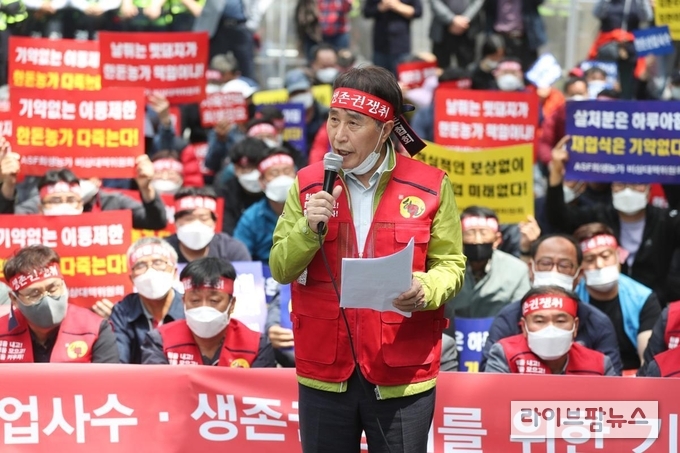 지난해 아프리카돼지열병(ASF) 발생으로 예방적 살처분과 도태로 경제적 타격을 받고있는 경기‧강원북부 양돈농가들이 생존권 보장을 요구하며 거리로 나왔다.
