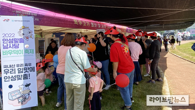 육우자조금은 또한 개천절 연휴기간 경기도 안성에서 진행된 “2022 안성맞춤 남사당 바우덕이 축제”에서 육우 로스구이 시식과 더불어 룰렛 이벤트, 풍선아트 등 이벤트를 마련해 소비자들과 만남의 시간을 가졌다.