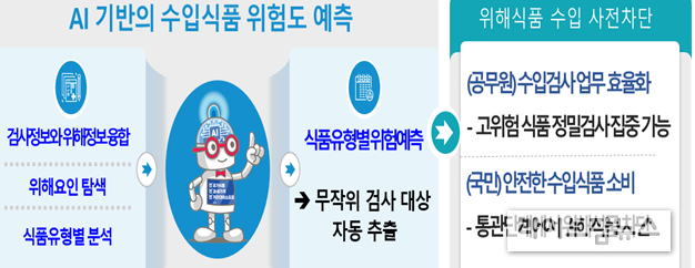 식품의약품안전처(처장 오유경)는 위해도가 높은 수입식품의 국내 유입을 사전에 차단하기 위해 가공식품 중 ‘농산가공식품류’와 ‘수산가공식품류’의 특성을 반영해 개발한 ‘인공지능(AI) 위험예측 모델’을 내년 1월부터 수입 통관검사에 적용한다고 14일 밝혔다.