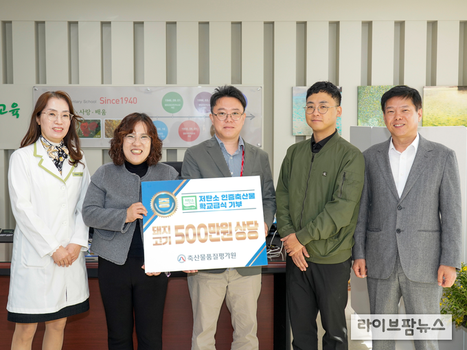 축산물품질평가원(원장 박병홍)은 지난 10일, 미래세대와 저탄소 인증 축산물의 가치를 공유하고자 아산시 4개 초등학교에 500만 원 상당 저탄소 인증 돼지고기를 기부했다.