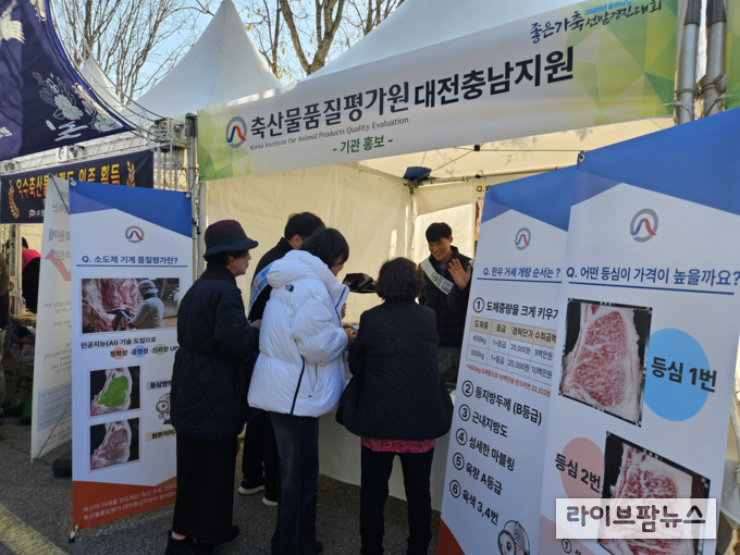 축산물품질평가원 대전충남지원(지원장 선창완)은 지난 19일, 충남 예산군 농업기술원에서 열린 ‘2025 충남 좋은 가축 선발대회’에 참여해 기관의 주요 사업과 역할을 홍보했다고 밝혔다.