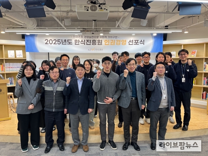 한식진흥원은 지난 26일 한식문화공간 이음에서 이규민 이사장 및 임직원 등이 참석한 가운데 ‘2025 한식진흥원 인권경영 선포식’을 개최했다고 밝혔다.