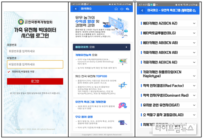 농가는 이 앱을 통해 형질별 유전체 육종가 및 선발지수값(GTPI), 우수 개체 조회, A2 유전자 등 유전적 특성 개체 조회 등 현장에서 필요한 다양한 유전체 정보를 실시간으로 확인할 수 있게 되었다.