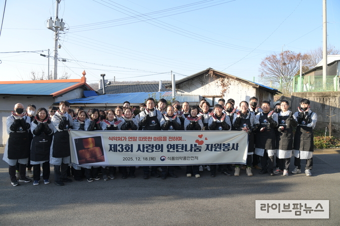 식품의약품안전처(처장 오유경)는 연말연시를 맞아 18일, 배달이 어려운 곳에 있는 기초생활보장 수급자, 차상위, 저소득 독거노인 가정에 연탄을 전달하는 ‘제3회 사랑의 연탄배달 자원봉사’를 실시한다.
