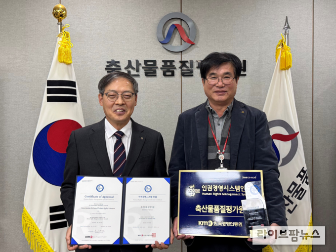 박병홍 축산물품질평가원장은 “이번 인증은 전사적인 인권 경영 실천 의지와 이를 뒷받침하는 체계적 운영 시스템을 대외적으로 인정받은 결과”라며, “인권 존중의 가치를 지속적으로 확산해 인권 경영 선도기관으로 거듭날 것”이라 밝혔다.