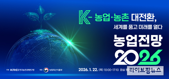 한국농촌경제연구원(원장 한두봉, 이하 KREI)은 오는 22일 오전 10시, 잠실 롯데호텔 월드 크리스탈볼룸(3층)에서 ‘K-농업·농촌 대전환, 세계를 품고 미래를 열다’를 주제로 ‘농업전망 2026’ 대회를 개최한다.