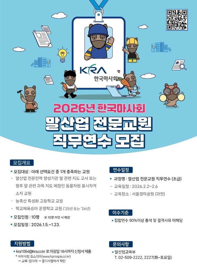 접수는 1월 23일까지이며, 보다 자세한 내용은 한국마사회 말산업정보포털 호스피아에서 확인 가능하다.