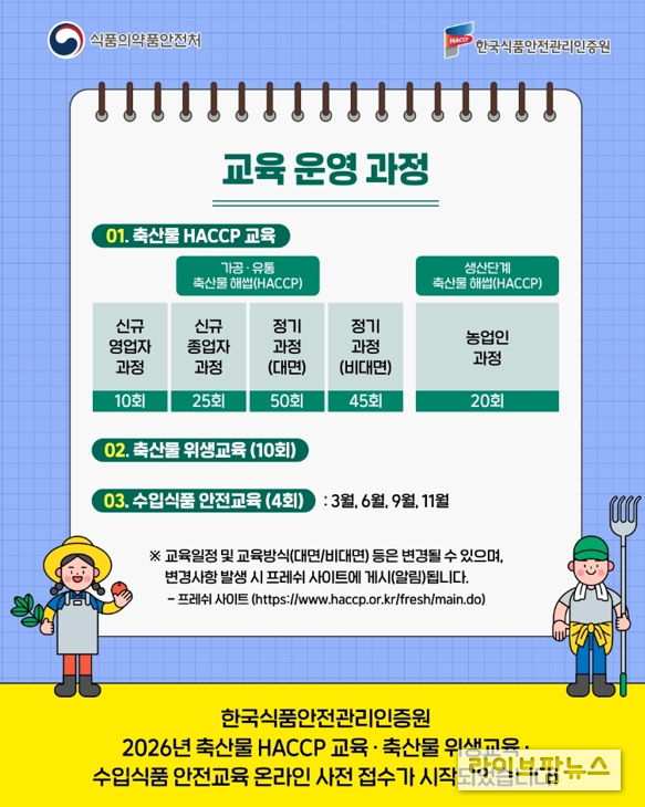 해썹인증원, 2026년 법정교육 언제든지 신청하세요!