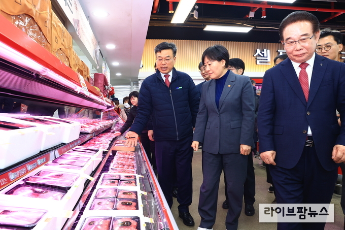 송미령 농림축산식품부(이하 농식품부) 장관은 설 성수기를 맞아 5일 오후, 대구광역시 소재 대구축협의 축산물 프라자를 방문하여 축산물 수급 상황을 점검하고 현장 관계자를 격려했다.