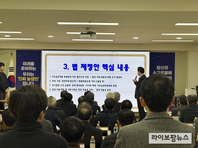 아울러 현행 제도의 법적 성격 모호, 회원 범위 불명확, 이사회·자조금관리위원회 간 권한 혼선 등 3대 문제점을 짚고, 정관 자율 확대를 통한 단체 자율성 보장, 주산지협의체 참여 근거 마련, 자조금 미납자 지원제한 확대 등 자조금단체 기능 활성화 방안도 함께 설명했다. 이에 대의원들은 자조금단체의 법적 지위와 대표성을 명확히 하고 의사결정 구조를 일원화하는 등 자조금법 제정 방향에 깊이 공감했으며, 법안이 조속히 국회에서 제정·시행되기를 바라는 데 뜻을 모았다.