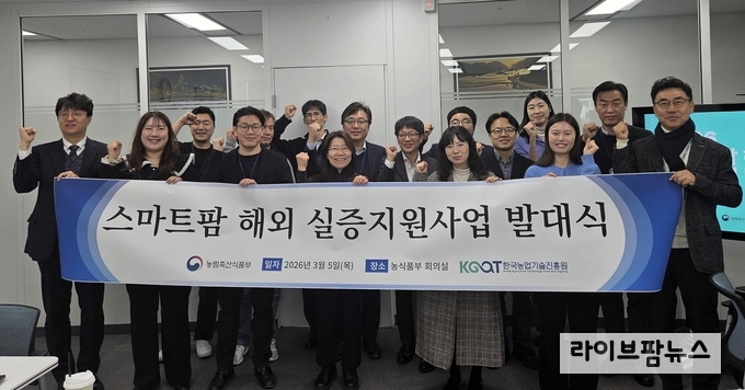 한국농업기술진흥원(원장 안호근)과 농림축산식품부(장관 송미령)는 5일 ‘2026년 스마트팜 해외 실증지원사업’ 선정기업 발대식을 열고, 선정기업과 사업 수행 협약을 체결했다. 발대식에는 농식품부 농산업수출진흥과 서정호 과장, 농진원 관계자, 선정기업 대표 등 약 20명이 참석했다.