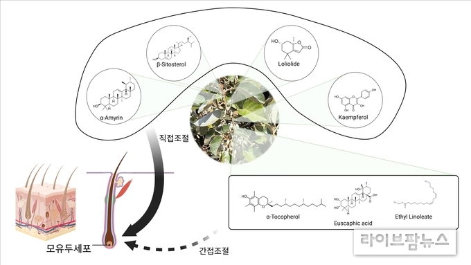 이번 연구는 보리밥나무 추출물의 탈모 예방 효과가 어떤 성분에 의해 나타나는지 과학적으로 규명한 데 의미가 있다. 연구진은 보리밥나무 가지 추출물을 분석해 모유두세포의 증식과 활성화에 직접적인 영향을 미치는 β-sitosterol, α-amyrin, loliolide, kaempferol 4가지 천연성분을 확인했다.