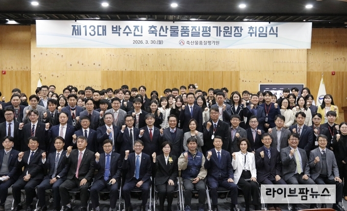 박수진 신임 축산물품질평가원장이 30일 세종시 본원에서 취임식을 갖고 공식 업무를 시작했다. 제13대 원장으로 취임한 박 원장은 데이터 기반 행정과 유통 혁신을 통해 축산업의 경쟁력을 높이겠다는 방향을 제시했다.