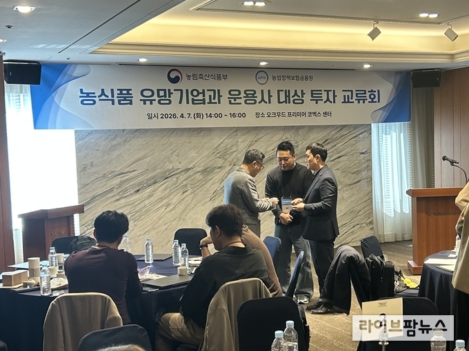 농림축산식품부(장관 송미령)는 7일 오크우드 프리미어 서울 코엑스에서 농식품 산업을 선도할 유망기업과 민간 투자 자본 간 네트워크 형성을 위한 투자 교류회를 열었다. 이번 행사는 농림축산식품부와 농업정책보험금융원이 공동 주최했으며, 푸드테크 및 그린바이오 분야의 기업 40개사와 투자 운용사 11개사가 참여했다.