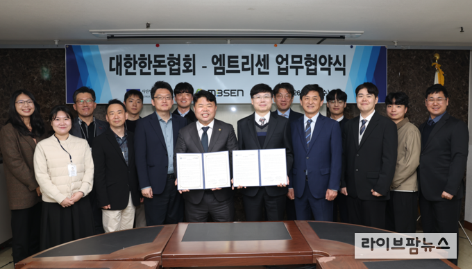 대한한돈협회(회장 이기홍)와 ㈜엠트리센은 지난 8일 제2축산회관에서 인공지능(AI) 기술을 활용한 한돈산업 발전과 농가 생산성 향상을 위한 업무협약(MOU)을 체결했다.