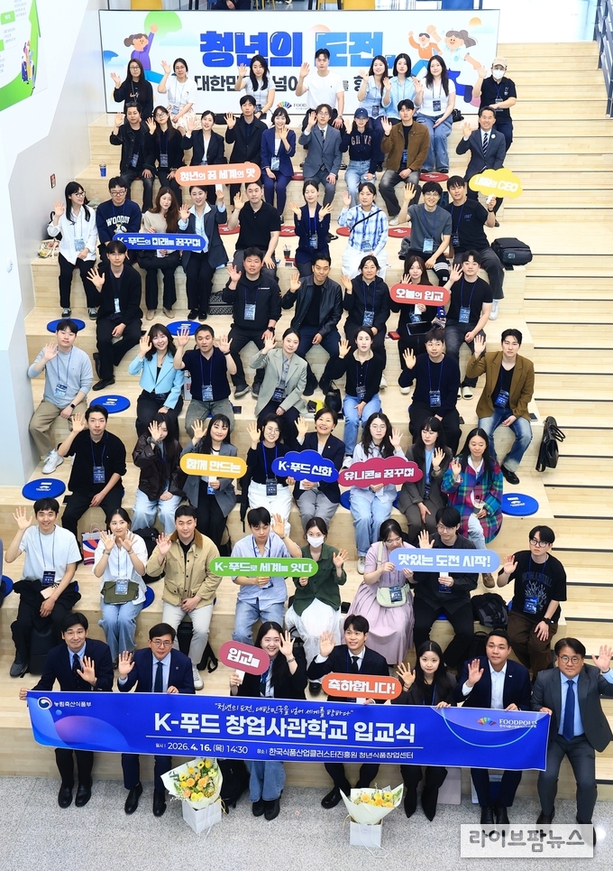 농식품부는 16일 전북 익산 국가식품클러스터에서 ‘K-푸드 창업사관학교’ 제1기 입교식을 개최했다고 밝혔다. 이번 사업은 식품 분야 청년 창업을 체계적으로 지원하기 위해 신설된 프로그램으로, 창업 전 과정을 ‘원스톱’으로 지원하는 것이 특징이다.
