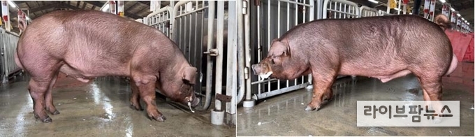 선발된 개체는 체중 105kg 도달 기간이 각각 133.4일, 128.8일로 평균(147일)보다 보름 이상 빨라 우수한 성장성을 보였다. 또한 유두 수가 좌우 각각 7개씩 총 14개로 균형 있게 발달해 번식 능력도 양호하며, 등지방두께 역시 적정 수준을 유지하는 것으로 평가됐다.