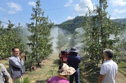 농업 고령화에 따른 인력 부족이 심화되면서 농업 현장의 노동력 확보 문제가 갈수록 심각해지고 있다. 특히 사과·배 재배 과수농가의 엽면시비(잎을 통해 비료나 영양제를 공급하는 재배기술)와 병해충 방제 작업은 높은 체력 소모와 숙련 기술을 요구해 작업 환경 개선이 시급한 상황이다. 이에 한국농업기술진흥원(원장 안호근)은 '2025년 농업기술 산학협력지원사업'을 통해 농촌진흥기관 추천기술인 '과수 스마트 엽면시비기'를 실증과제로 선정하고, 국립한국농수산대학교(총장 이정우)와 함께 과수농가 현장 적용 및 실증을 진행하고 있다고 6일 밝혔다. 한농대 홍순중 교수 연구팀이 실증 중인 '과수 스마트 엽면시비기'는 주행부와 작업부로 구성된다. 현장 실증과 농업인 의견 수렴을 통해 주행부는 ▲장애물 감지 후 자동 정지 ▲제동거리 최소화 ▲경사면 안정 주행 기능을 갖추도록 개선했으며, 작업부는 ▲교반기 및 잔량 게이지 설치 ▲분무량 증대 등을 통해 기능성을 강화했다. 특히 농업 현장의 수요를 반영해 자동주행 기능을 신규 탑재했다. 이 기능은 설정된 경로를 따라 자율 주행하고 작업 완료 후 원위치로 복귀하는 방식으로 작동한다. 홍순중 교수 연구팀은 강원 정선, 대전 유성, 전